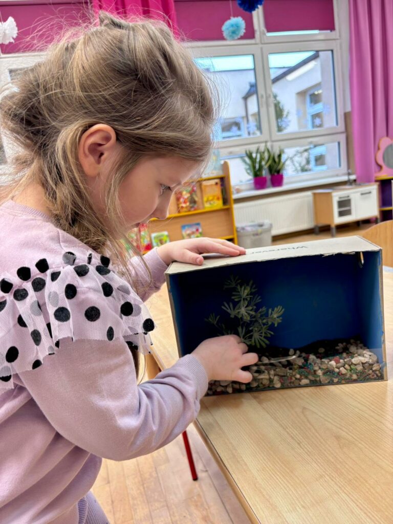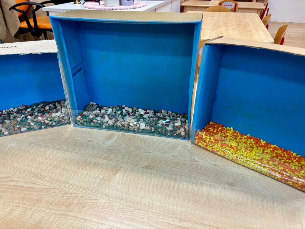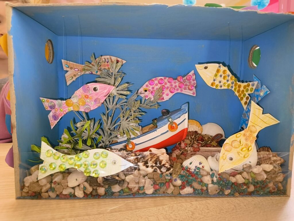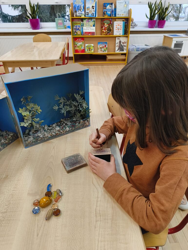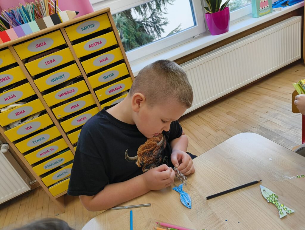 SMERFY pracowały dzielnie przy produkcji różnych gatunków rybek, samodzielnie planowały i projektowały rozkład akcesoriów w każdym akwarium, „sadziły” rośliny, układały muszle i instalowały skrzynie skarbów. Było to efektowne i bardzo przyjemne podsumowanie tematyki o zwierzętach hodowanych w domu.