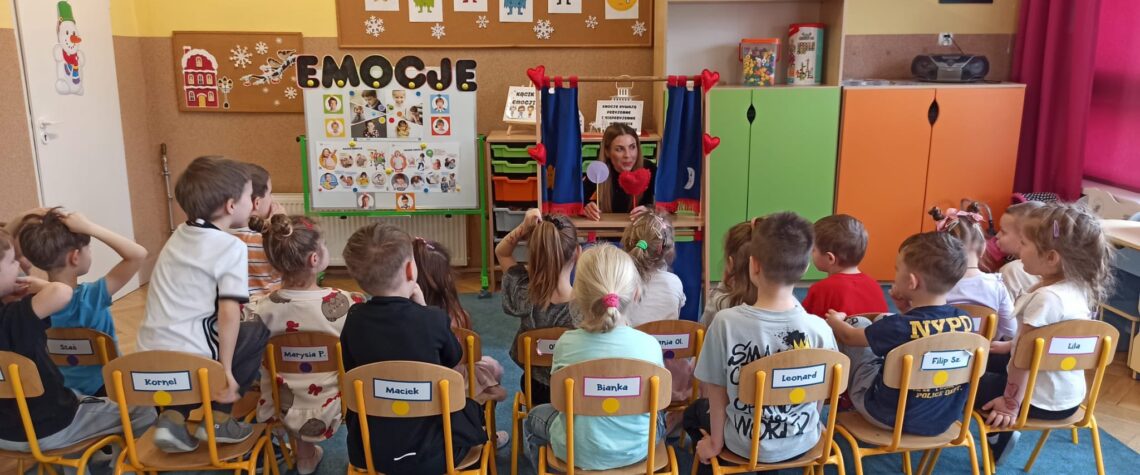 CHOCHLIKI podczas zajęć wyruszyły w wyjątkową podróż do „Fabryki Emocji”. Celem zajęć było rozwijanie umiejętności rozpoznawania i nazywania podstawowych emocji oraz poznanie sposobów radzenia sobie z trudnymi uczuciami. Pani Monika przedstawiła dzieciom teatrzyk pt. „Serce, które pogubiło kolory”, po którym wspólnie rozmawiano o tym, co czuło serce oraz kiedy my odczuwamy podobne …