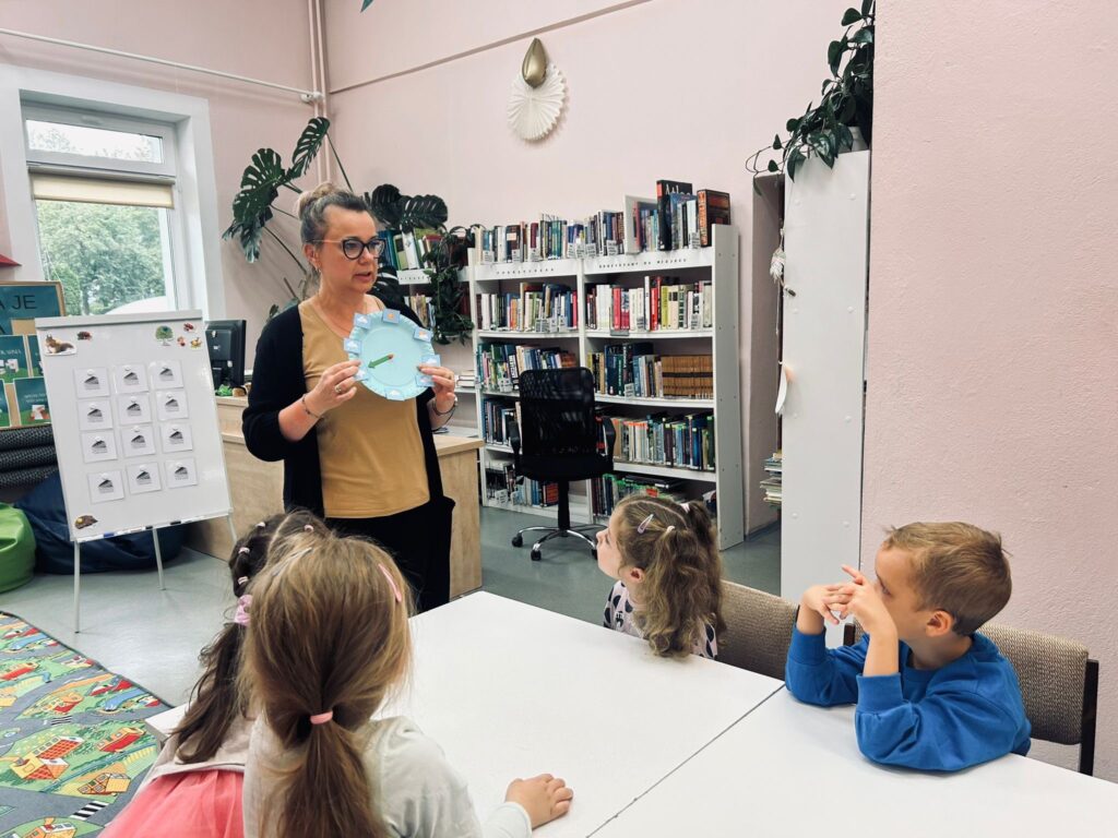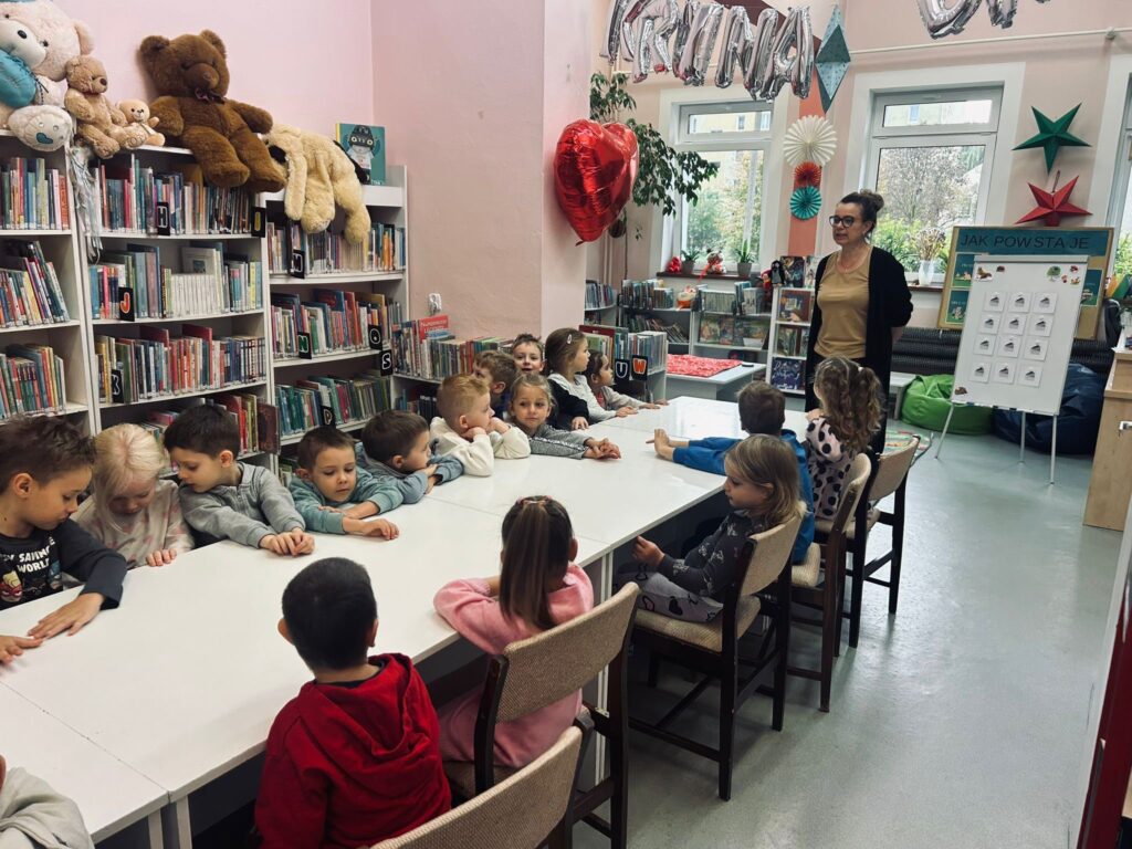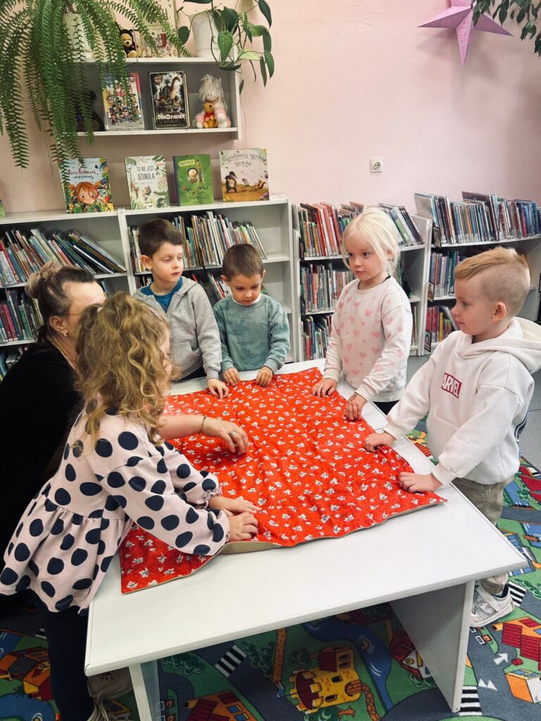 Dzieci z ciekawością oglądały książki, rozmawiały o jesieni i odkrywały jej kolory oraz dary podczas sensorycznych przygód. Było dużo radości, śmiechu i nowych wrażeń — nasze wyjście zdecydowanie możemy zaliczyć do bardzo udanych!