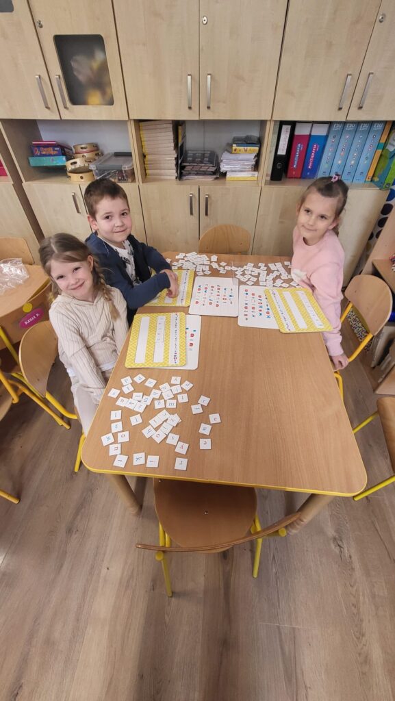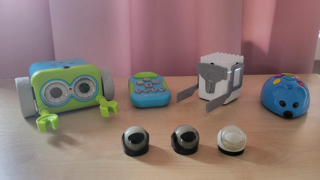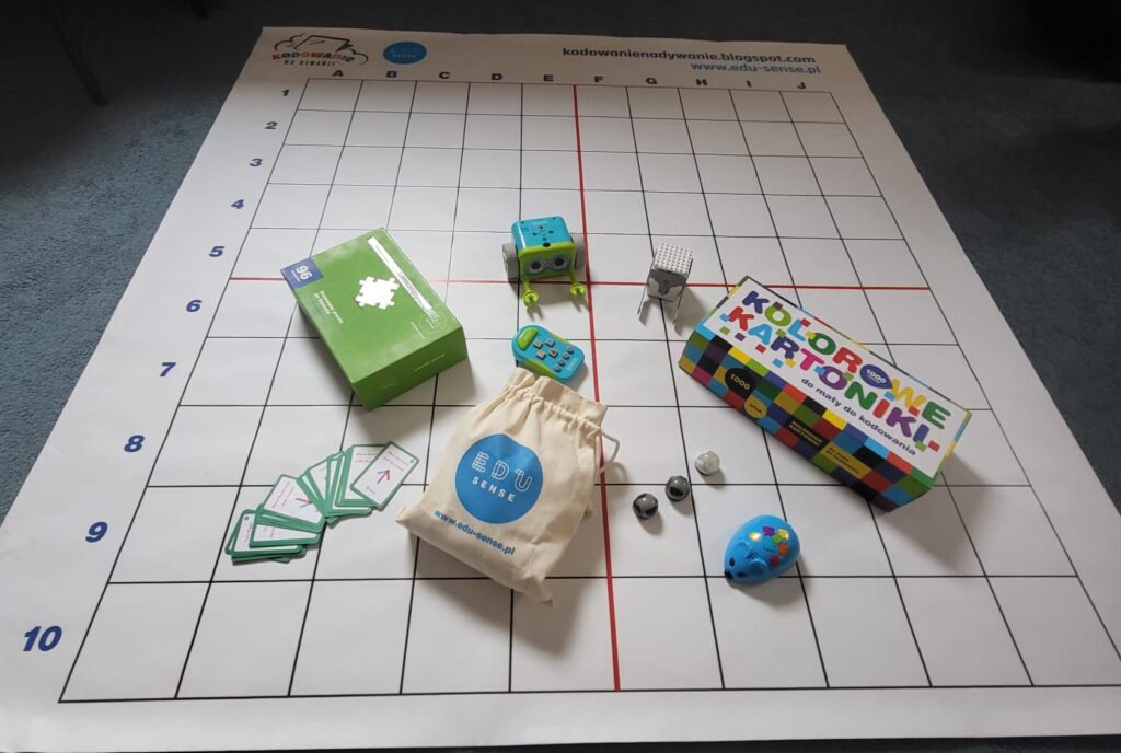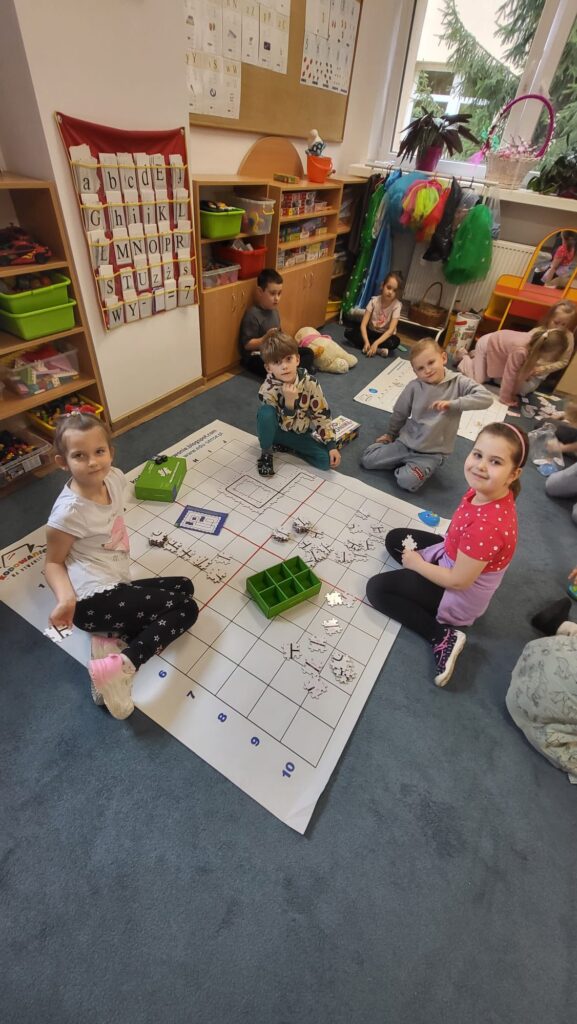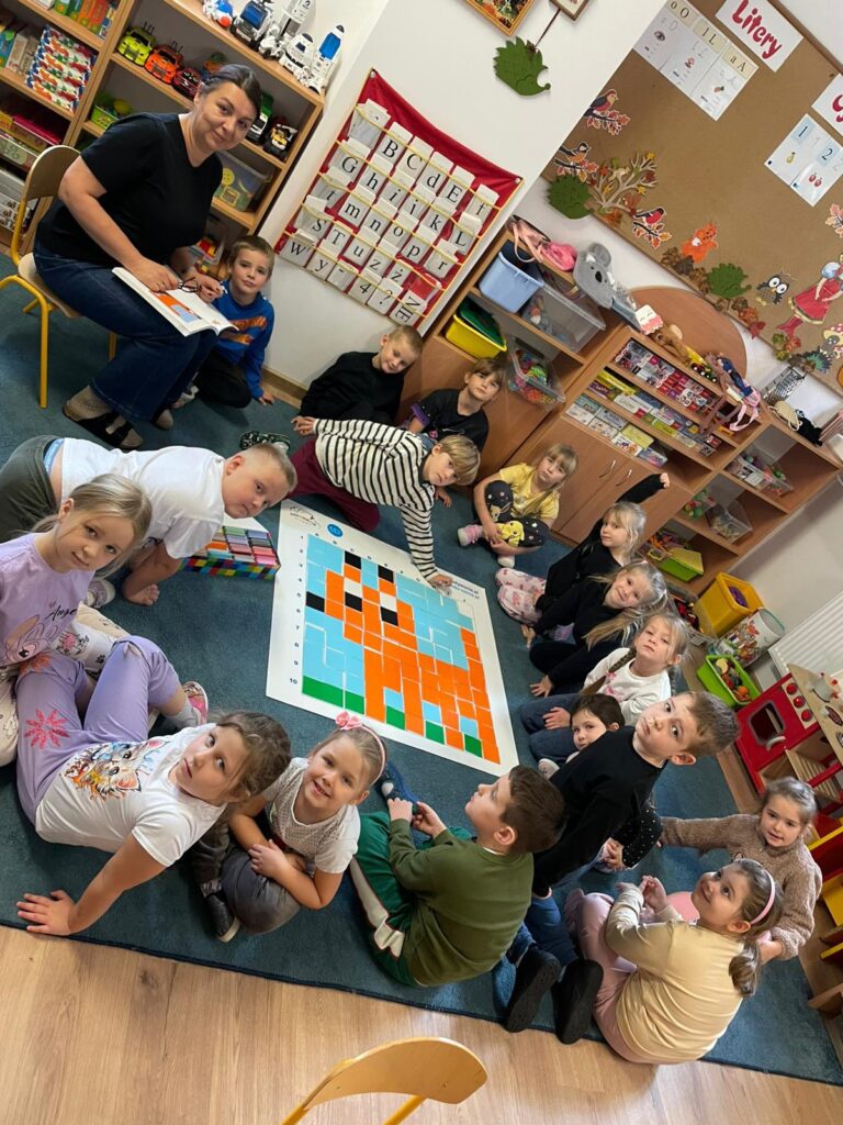 W naszym przedszkolu do zabawy i nauki z dziećmi wykorzystujemy narzędzia do kodowania offline takie jak: mata do kodowania, krążki, kolorowe kubki, kolorowe kartki, klocki, i inne, a także roboty edukacyjne Ozobot, Botley, GeniBot, myszka Jack. W praktyce Ozoboty – to miniaturowe roboty, które „czytają” kody narysowane mazakami. Dzieci rysują na kartce linie (trasy), a odpowiednie sekwencje kolorów (kody) sprawiają, że robot przyspiesza, obraca się lub zmienia kolor świateł. Myszka Jack i Botley to roboty programowane za pomocą pilota z przyciskami, umożliwiają planowanie dłuższej trasy, omijanie przeszkód lub przenoszenie przedmiotów. GeniBot to edukacyjny robot, pozwalający na naukę programowania za pomocą kart do kodowania. W trakcie zabaw z kodami dzieci uczą się logicznego myślenia, odczytywania symboli, orientacji w przestrzeni oraz koncentrują się na wyszukiwaniu rozwiązań. To nauka przez zabawę, która przyczynia się do rozwoju nowych umiejętności oraz przygotowuje do korzystanie z technologii w przyszłości.