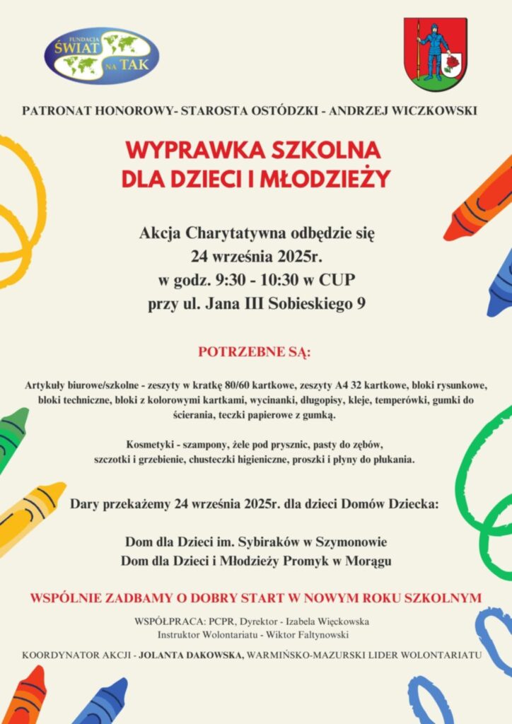 Kolejna akcja, w której bierzemy udział, to „WYPRAWKA SZKOLNA DLA DZIECI I MŁODZIEŻY”.