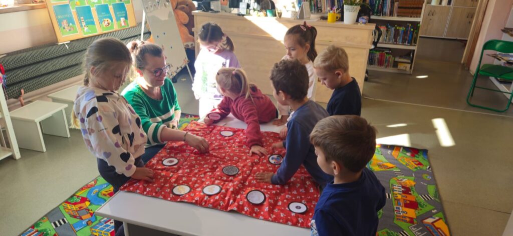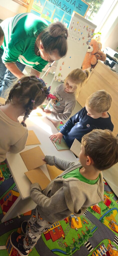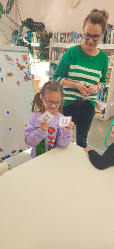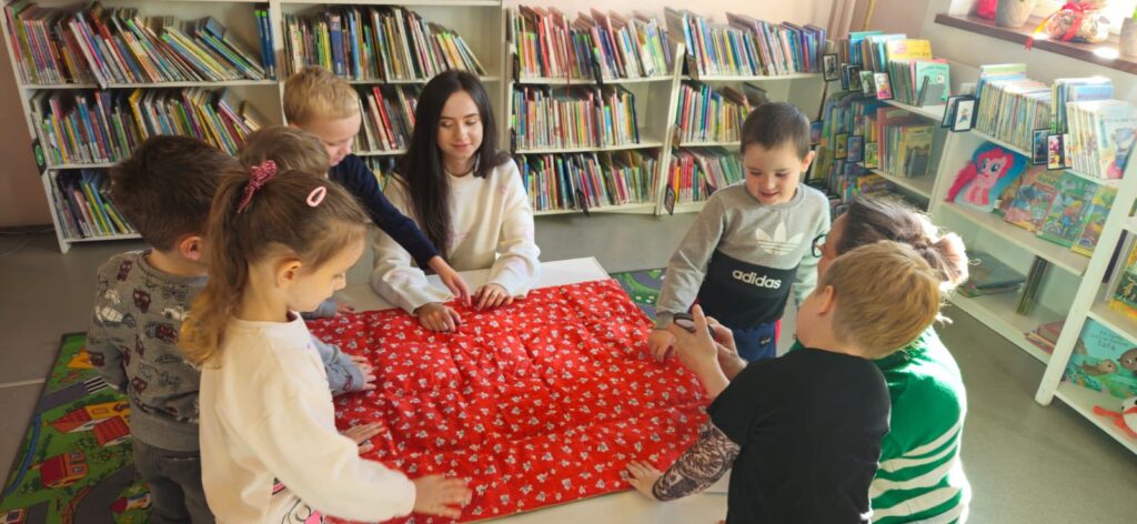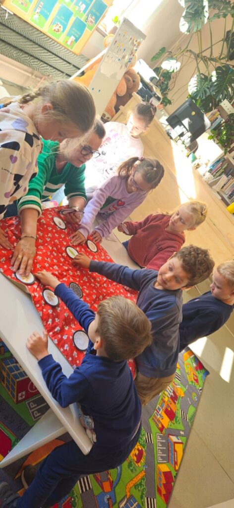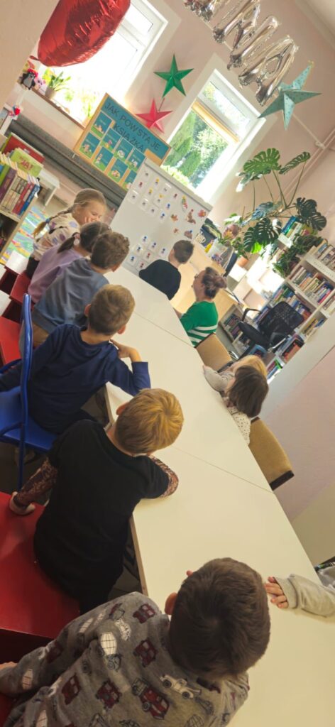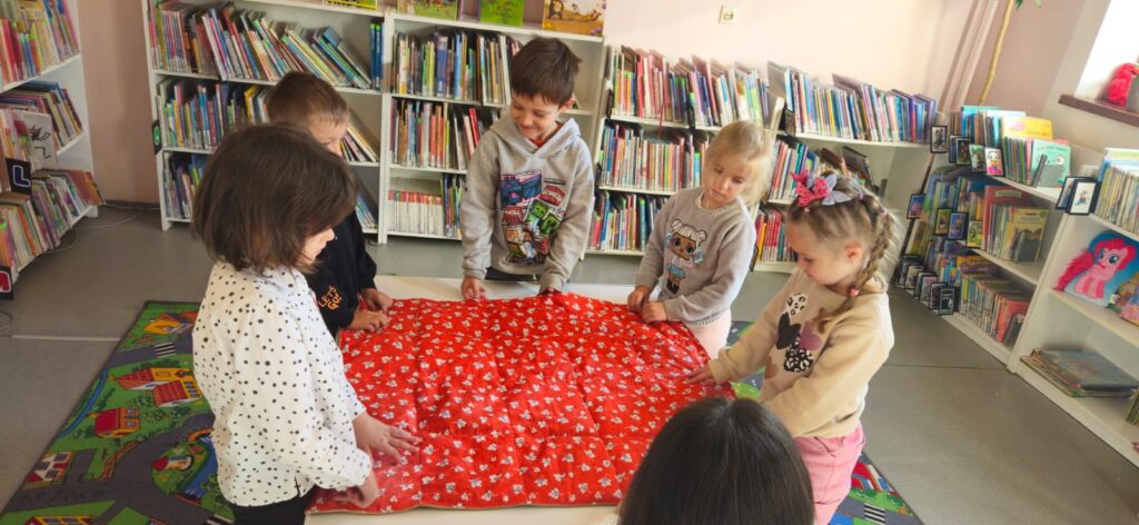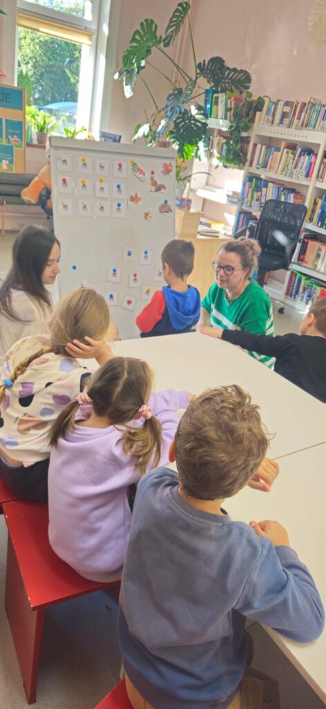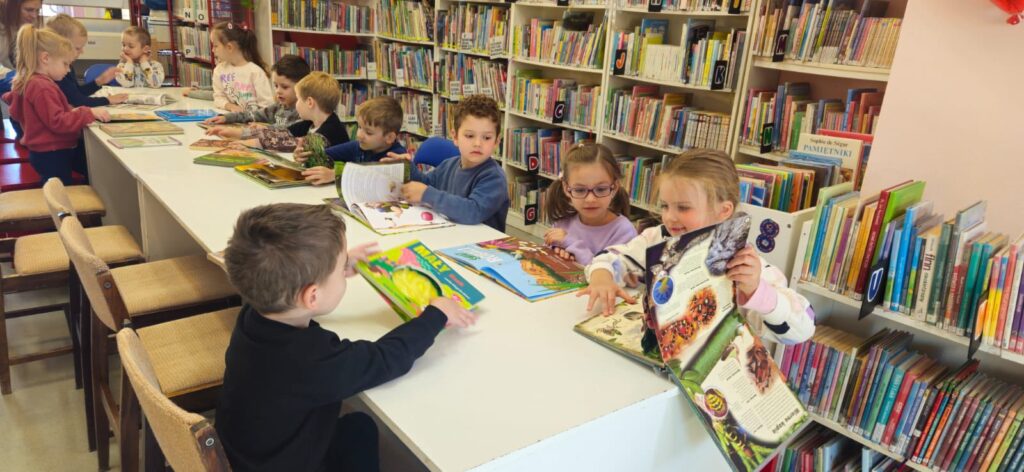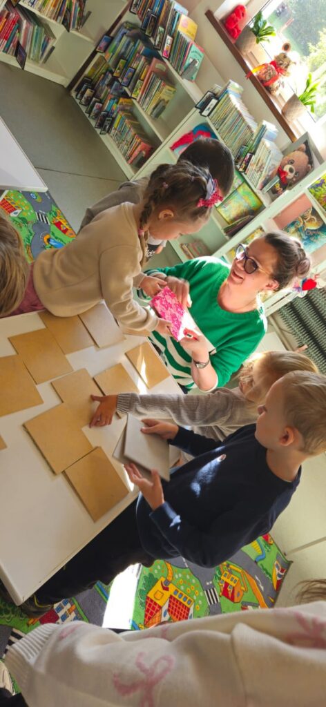 Grupa SKRZATY wybrała się na wyjątkową wizytę do biblioteki. Dzieci uczestniczyły w ciekawych zajęciach sensorycznych o tematyce jesiennej, podczas których spotkały się również z ulubioną bohaterką – Kicią Kocią. Było dużo radości, zabawy i odkrywania książkowego świata wszystkimi zmysłami.