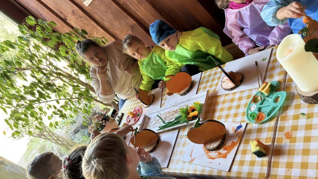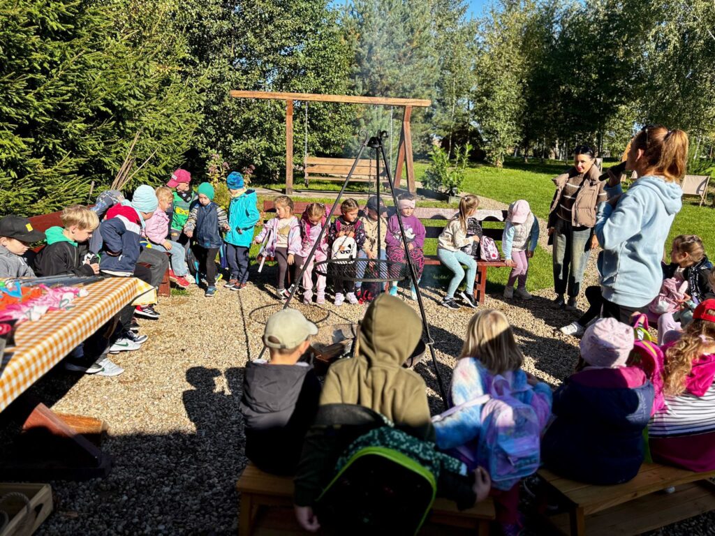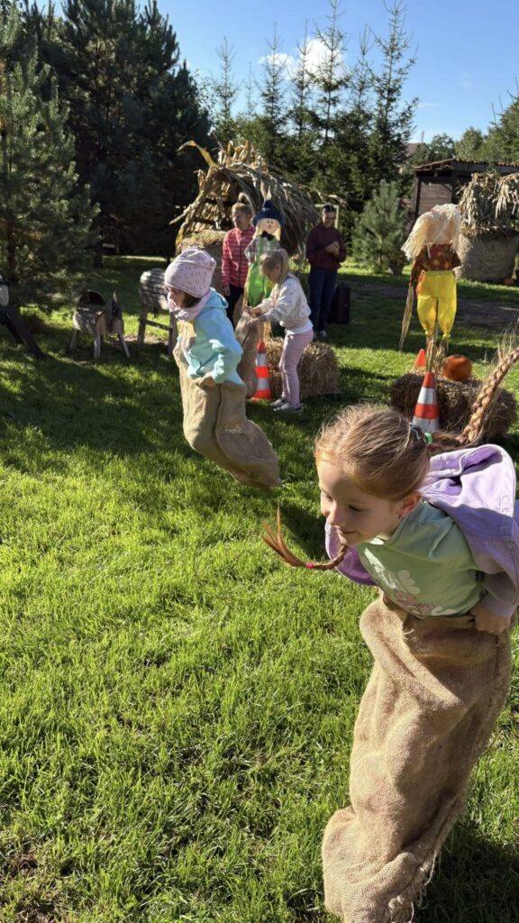 Również SMERFY przywitały jesień we wspaniałym miejscu „Ważka – strefa zabawy i relaksu dla dzieci” w Tyrowie. Dzieci spędziły czas w otoczeniu przyrody, wśród kreatywnych zabawek, przy pysznym kompocie jabłkowym i owocach z cynamonem. Były zabawy z wykorzystaniem darów przyrody, zabawy z elementem konkurencji, był też czas na relaks i swobodę. Wszystkim tym aktywnościom towarzyszyła przepiękna słoneczna aura.